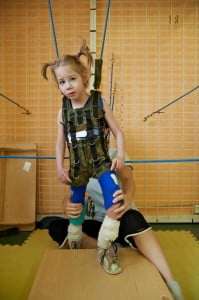 Przez weekend Julcia sobie odpocznie i nabierze sił przed kolejnym tygodniem ciężkiej pracy. Po pierwszym tygodniu jest zmęczona ale szczęśliwa. Na sali ćwiczyła ładnie, Ola mówiła że ładnie poddaje się kombinezonowi (theratogs) i koryguje postawę w czworaczkach i w siadzie. Myślę, że zaopatrzenie się w taki kombinezon to dla Julci dobra sprawa w tej chwili, kiedy troszkę zaczyna jej uciekać kręgosłup przy siedzeniu w krzesełku czy wózku. Póki co w Michałkowie ma okazję codziennie w nim ćwiczyć.