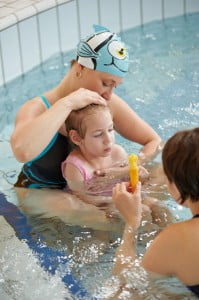 zajęcia z Agatką w basenie – metodą Hallwick, mimo, żę wyglądają na zabawę w wodzie, to ćwiczenia są dla Julci ciężkie, musi pilnować główki i nie bac się wody, choć Jula nie przepada za zanurzeniem uszów… na szczęście po chwilowym oporze Jula szybko nawiązuje dobry kontakt z Agatką 🙂