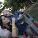 na zdjęciach co prawda tego nie widać, ale była tam jedna dziewczynka która bardzo przejmowała się tym, że Julcia zaczęła płakać (a zaczęła bo przestraszyła się chłopca który skoczył niedaleko nas z drabinki) i strasznie próbowała ją pocieszyć… opowiadała jak to ona bała się kiedyś pszczoły ale już się nie boi i (przekonana, że to jest przyczyną płaczu Julci) tłumaczyła jej że naprawdę nie ma się czego bać 🙂 naprawdę przesłodko to wyglądało 🙂 dzieci są bardzo wylewne i bezpośrednie, najczęściej to one (często bezskutecznie powstrzymywane przez rodziców) pytają nas dlaczego Julcia siedzi w wózeczku mimo, że jest już taka duża, są szczerze ciekawe i należy tą ciekawość zaspakajać, dlatego zawsze staram się jak najprościej dla nich wytłumaczyć co i jak.