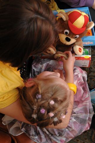 Julcia, jak i jej kuzynostwo, troszkę się bali, ale prezenty zgarnęli 🙂 W jednym momencie schludnie poukładane pod choinką pudełeczka i torebeczki, zamieniły się w stertę papierów i wyłaniających się spomiędzy nich dzieciaków z coraz to nowymi zabawkami w rączkach i jednym wielkim „wow!” w oczach 🙂 przesłodki widok 🙂 Ponieważ dzieciaczków jest troszkę ( i będzie jeszcze więcej bo jeden w drodze – nie u nas – uprzedzam domysły…) staramy się zawsze żeby Julcia też poczuła to zamieszanie, poczuła, że to coś fajnego i wyjątkowego i jesteśmy zawsze z nią w centrum wydarzeń, nie idziemy na bok, choć momentami nieco się boi, bo generalnie nie przepada za takimi zbiorowiskami i hałasem. Z naszą pomocą i wsparciem musi powolutku radzić sobie z emocjami i naprawdę coraz lepiej jej to wychodzi.