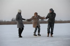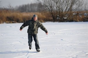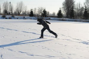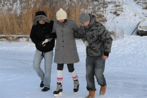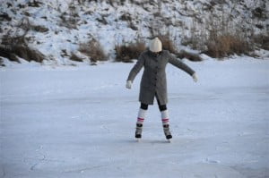 Mój brat w międzyczasie wskoczył w łyżwy które ze sobą przywiózł i pojeździł nieco na zamarzniętym stawie obok domku a my (oprócz mojego męża, który robił mu zdjęcia) w ciepełku patrzyliśmy przez okno na jego wyczyny, całkiem zresztą niezłe 🙂