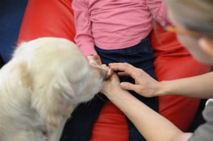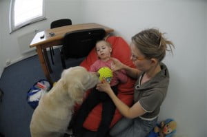 Julcia szybciutko przystosowała się do nowego otoczenia i nowych terapeutów. Bardzo polubiła zajęcia z panią logopedką i panią psycholog oraz dogoterapię z przesłodkim pieskiem Yoko i opiekującą się nimi Panią Małgosią. Zapraszam przy okazji do bliższego zapoznania się z pieskami na stronie http://delayla.republika.pl/