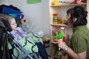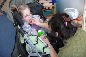 Najwięcej Julcia buntowała się na zajęciach ruchowych, tutaj ma ich codziennie 2.5 godzinny blok. One są bardziej wyczerpujące i wymagają od Julci najwięcej wysiłku, stąd pewnie bunt, ale niewielki i nie taki, z jakim rehabilitantka, pani Ola, by sobie nie poradziła 🙂